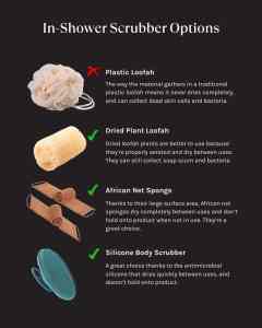 - Silicone body scrubbers are better for your skin, dry quickly, and are naturally anti-bacterial.